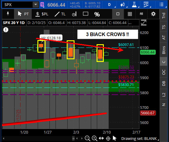 Today the SPX posted an unusual closing price of 666 and the daily charts now have a confirmed 3 Black Crows pattern. Powell speaks in front of Senate finance committe https://www.forexfactory.com/ next two days so expect a BIG MOVE coming this week!