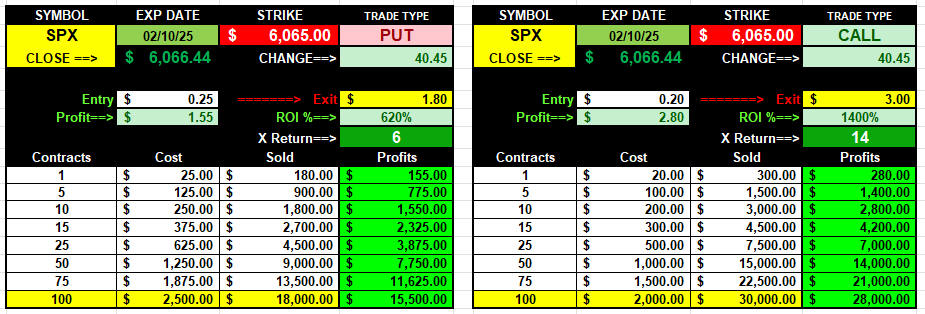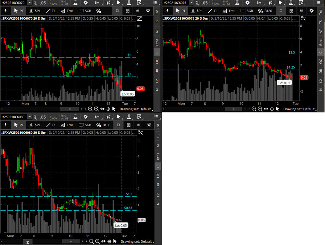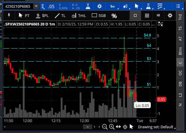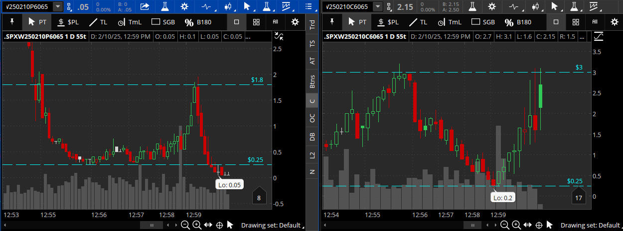The 6065 PUT hit the $1 Formula and stopped just short of the $5 target. This is why you layer exits when you start to compound.