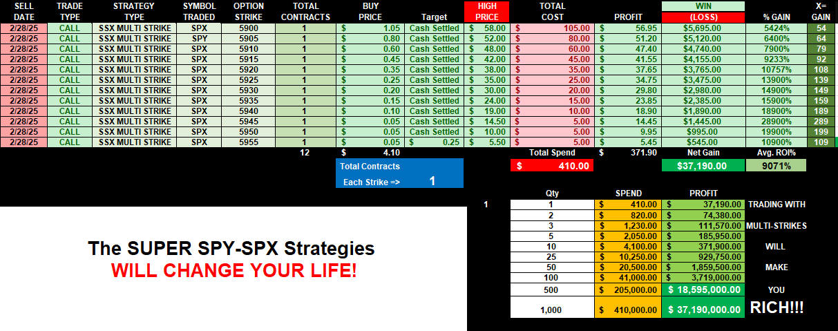 In 2025, you can have comparable outcomes to these becuase the Super SPY-SPX strategies consistently generate stagggering returns every week!