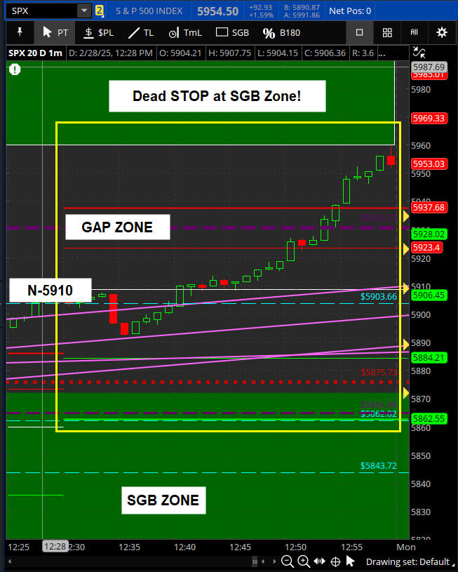 Today, the markets went super sonic parabolic and blew right through all the QP lines with a textbook stop at my SGB zone!