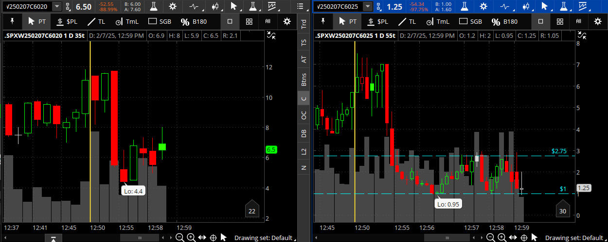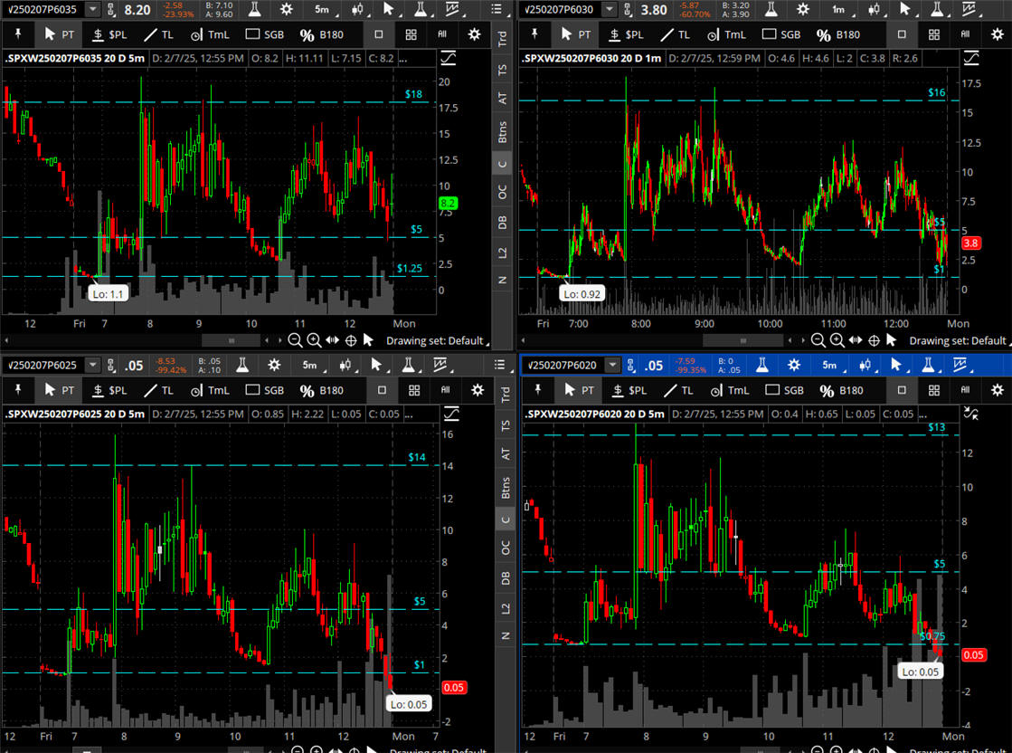 Today, there were no EOD Lotto Trades. The QP suggested strike prices were much higher than our max spend at $0.65; however, it did not matter if you were doing the $1 Opening Formula strategy...multiple strikes would have made your WEEK!