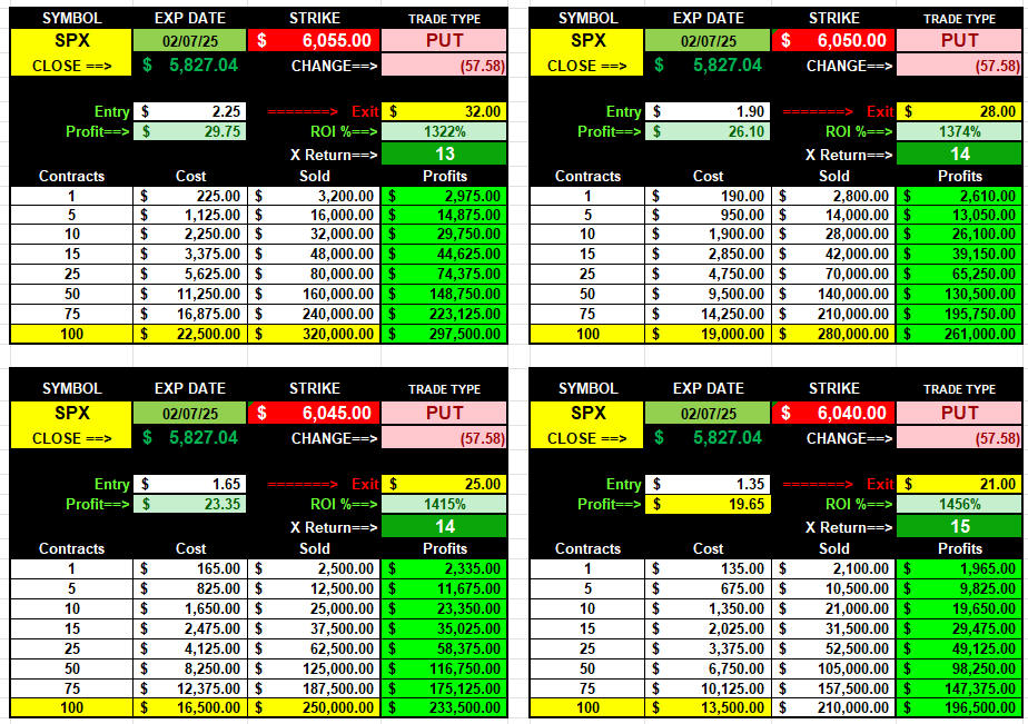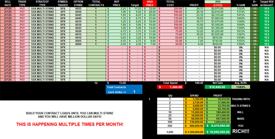 Just doing (1) ONE contract load and Multi-Strikes make AMAZING ProfitsUP! when the SPX goes parabolic...and this has happend multiple times in the past 6 months and will keep happening all year long!