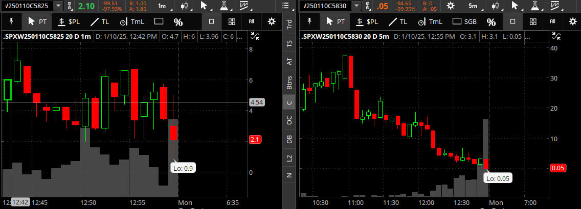 No EOD Lotto Trades strikes fit the formula and the price on then QP Neurtral 5825C strike did not drop down to the max spend of $0.65