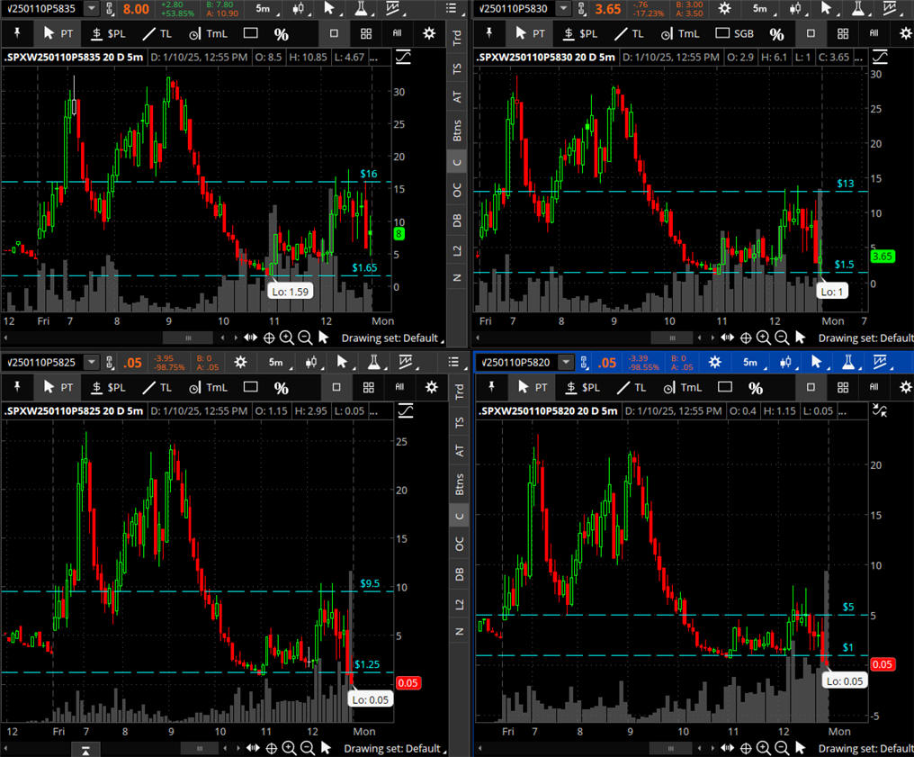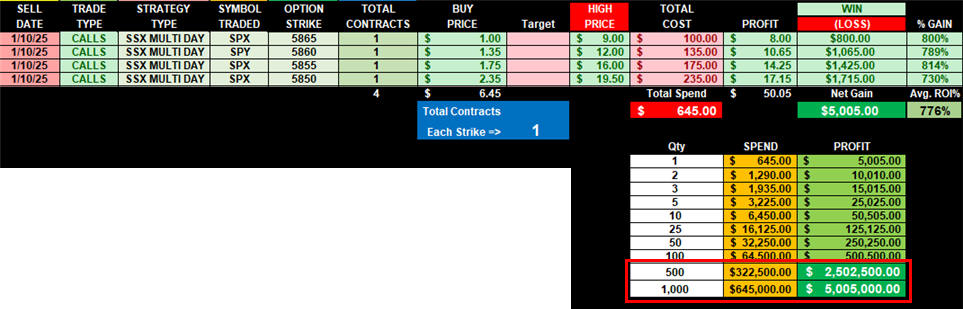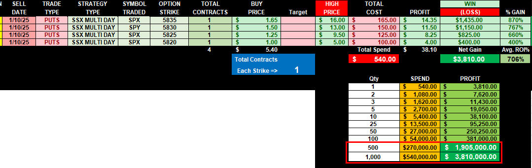 $1 Opening Formula - Multi-Strike was an easy path to $5 target on all PUT strikes, and some wet far beyond!
