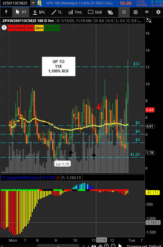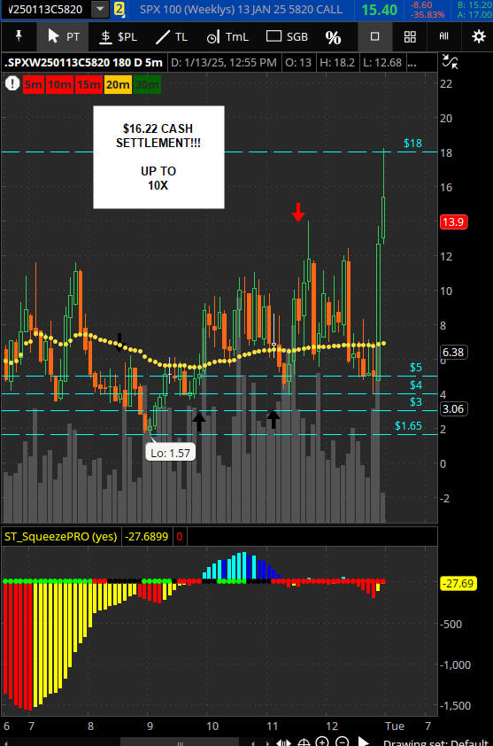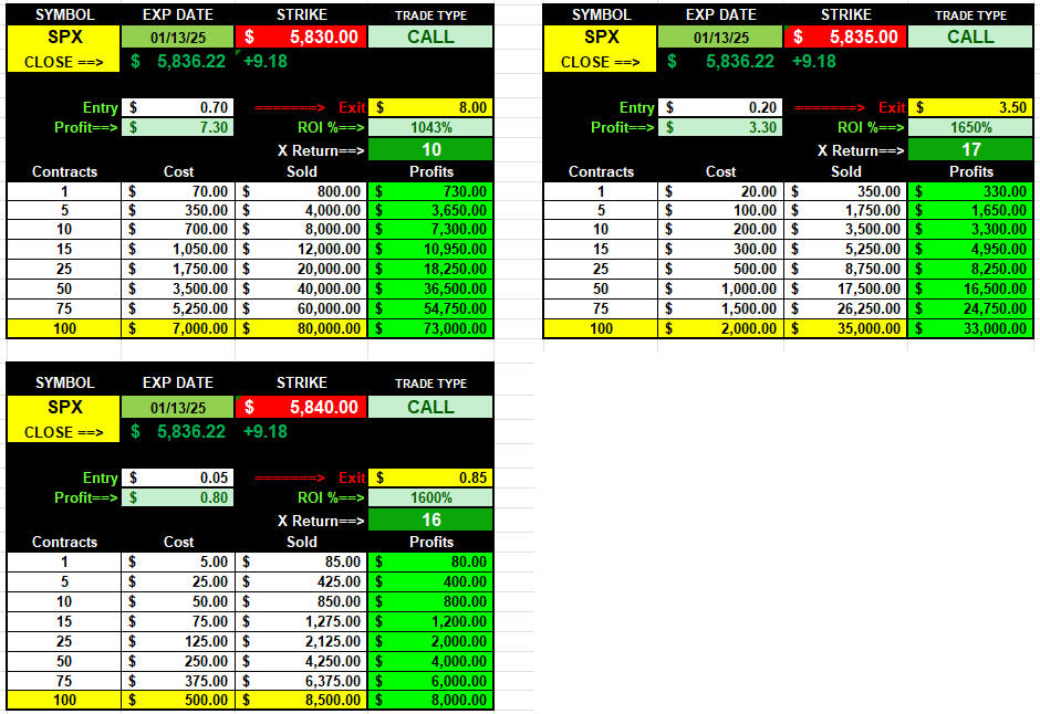 $1 Opening Formula - Target Strike was 5825 TO 5835 CALL - easy path to $4.00 and up to $18.00