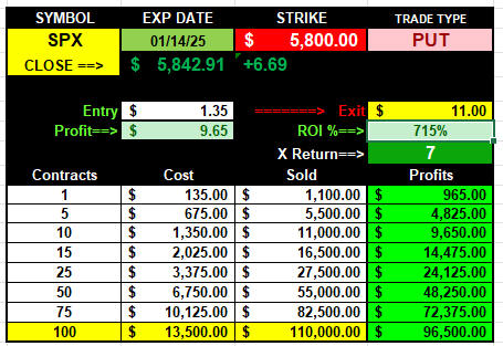 $1 Opening Formula - Target strikes: 5800 PUT "whole number"