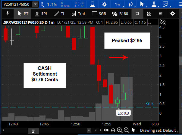 The 6050 PUT SHOT UP ALMOST 8X THEN closed $0.76 cash settlement.
