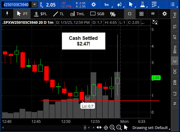 The 5940 C strike stopped just short of my $0.65 MAX spend so unless you were monitoring this and moved up your buy price, it