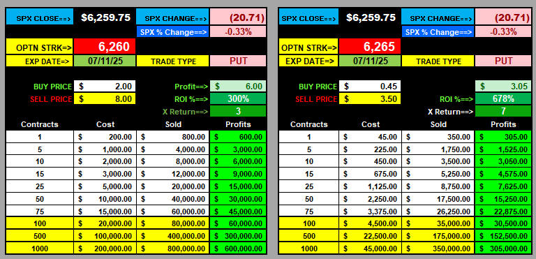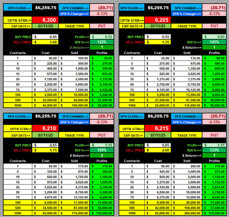 $1.00 Opening Formula Strike Ranges: CALLS 6305 / PUTS 6205