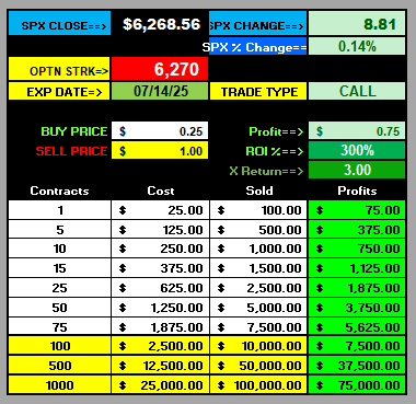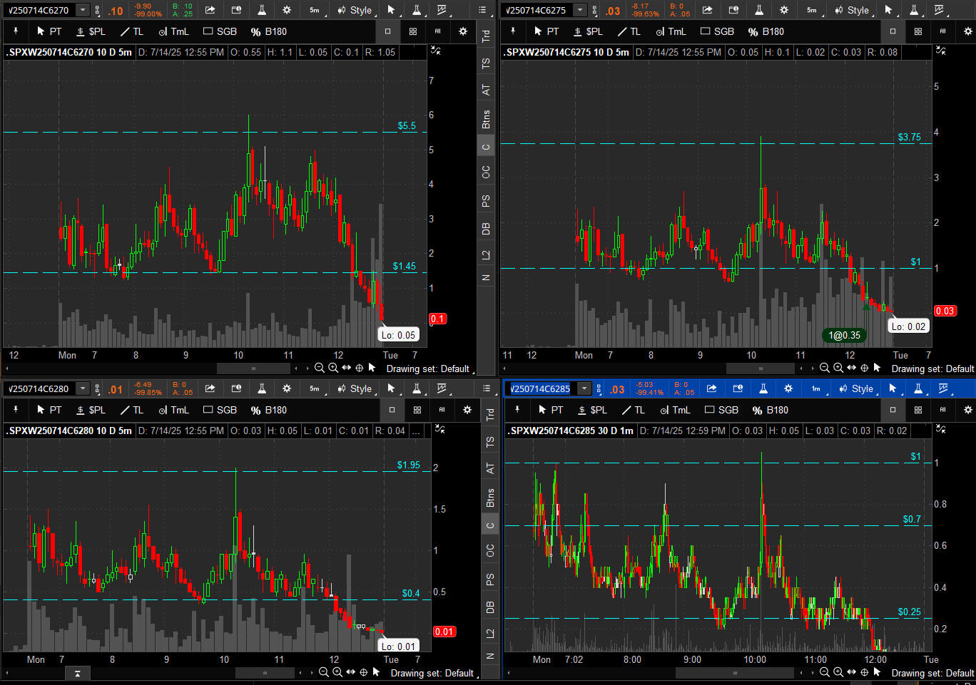 Today, the SPX held a tight range around neutral but still managed a 2-3X ROI on the QP Neutral 6270C strike: