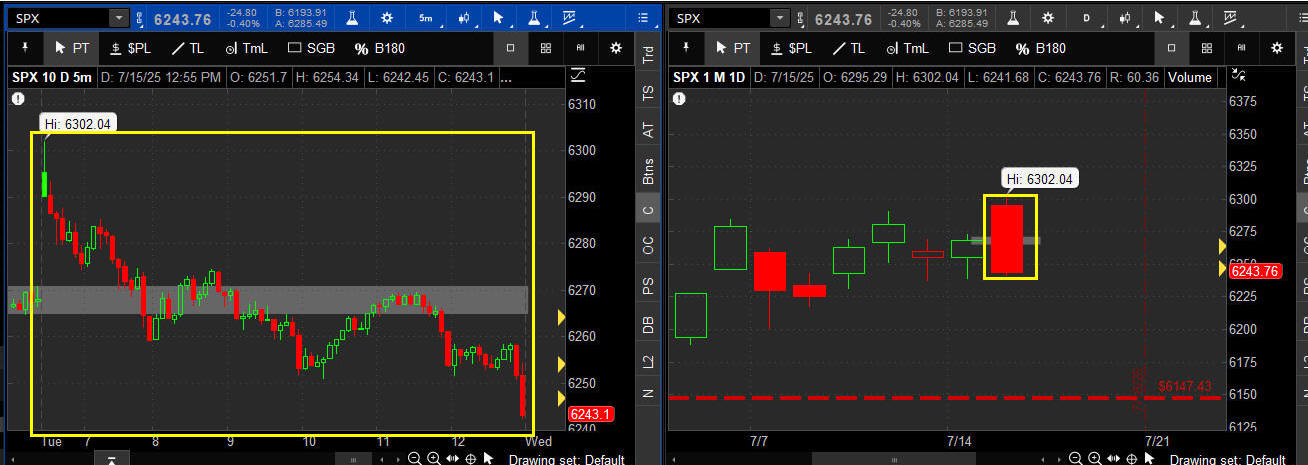 OPEN - 6295.29 / HIGH - 6302.04 / LO - 6241.68 / CLOSE - 6243.76 (-24.80 -0.40%) — Days Range: 60.36