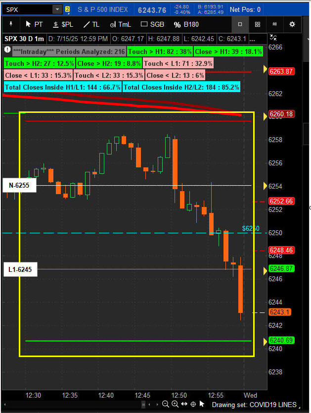 12:30 PM PST - Quant Pivot lines: Neutral = 6255 L1-6245 - CLOSE - 6243.76 (-24.80 -0.40%)
