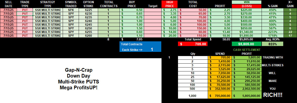 Today, the SPX took a nice dump into the final minute of trading jamming the QP Put strikes to Moby Dick ProfitsUP!