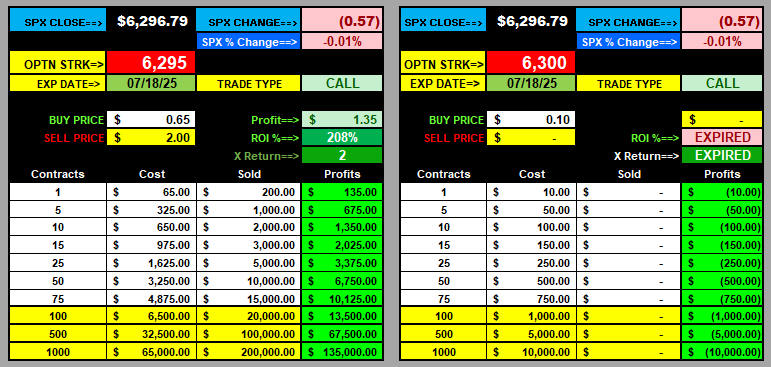 Today, I bought into the 6300C at my "sweet spot" and had layer orders in play but the SPX just could not get the move I was anticipating into the close.