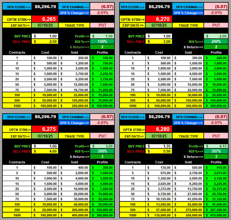 $1.00 Opening Formula Strike Ranges: CALLS 6365 / PUTS 6265