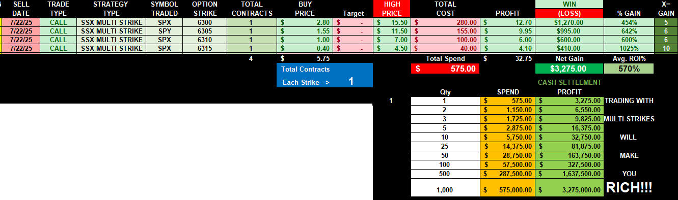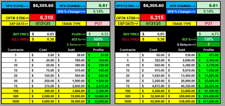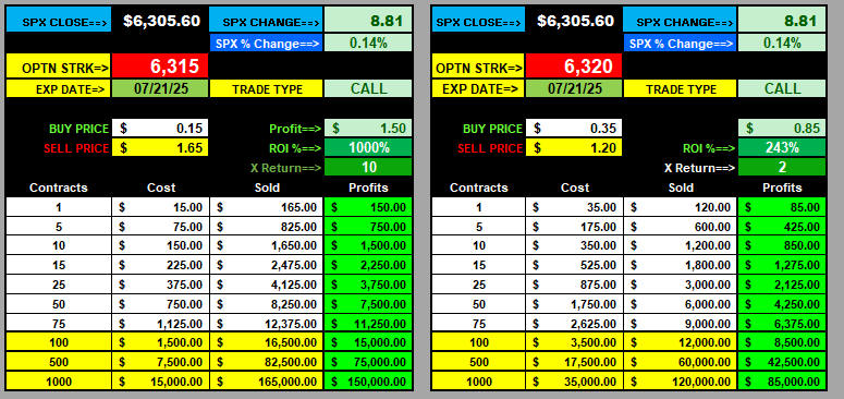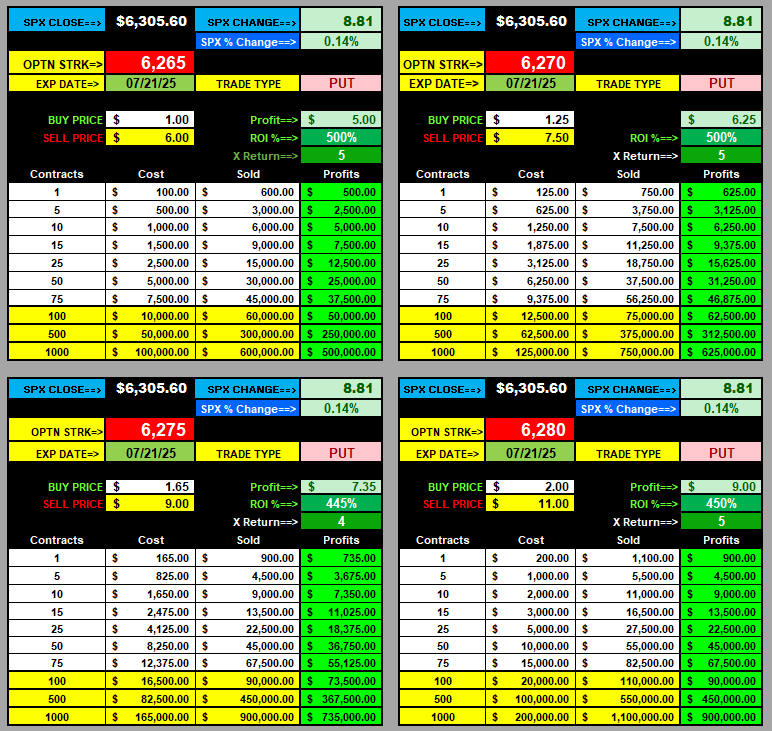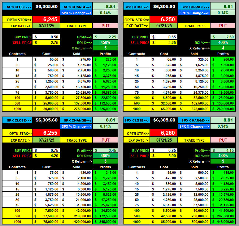 $1.00 Opening Formula Strike Ranges: CALLS 6355 / PUTS 6255