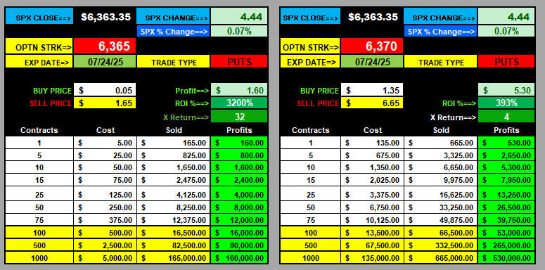 $1.00 Opening Formula Strike Ranges: CALLS 6420 / PUTS 6320