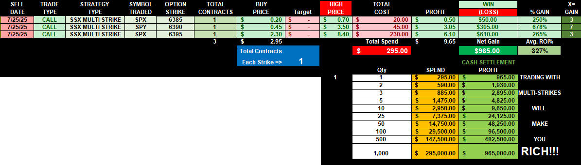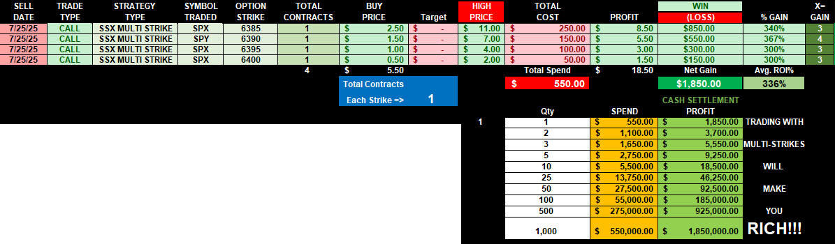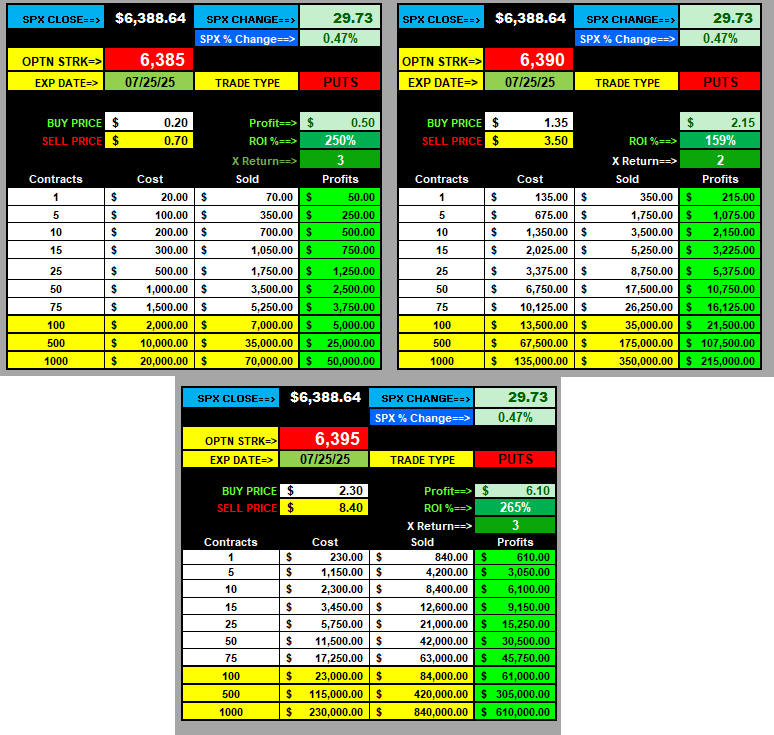 $1.00 Opening Formula Strike Ranges: CALLS 6420 / PUTS 6320