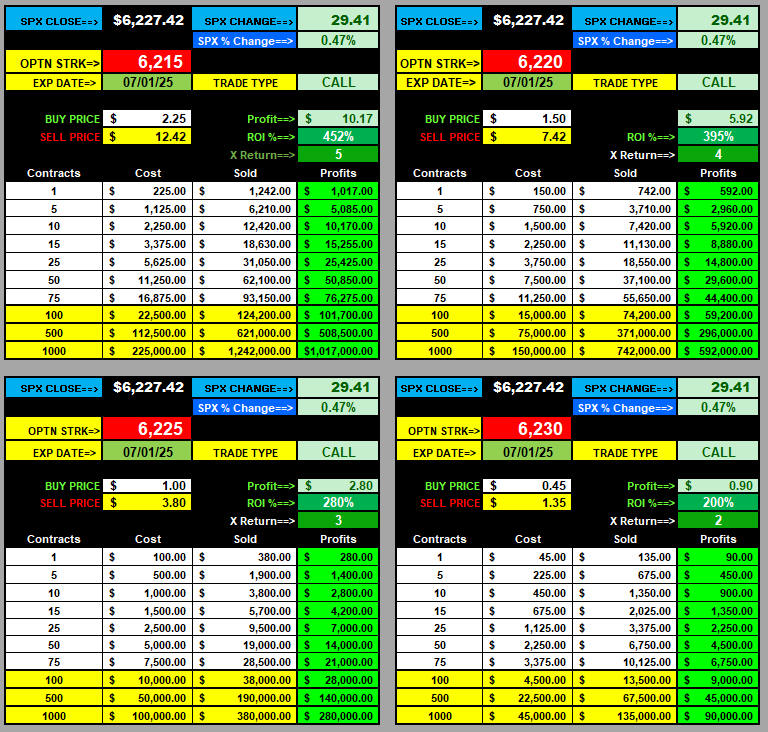 $1.00 Opening Formula Strike Ranges: CALLS 6245 / PUTS 6145