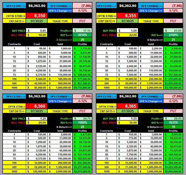 $1.00 Opening Formula Strike Ranges: CALLS 6430 / PUTS 6330
