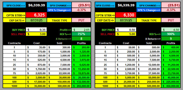 7-31-25 EOD LOTTO TRADES: