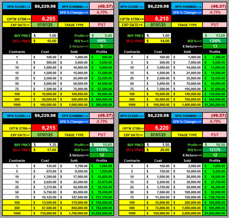 $1.00 Opening Formula Strike Ranges: CALLS 6310 / PUTS 6210