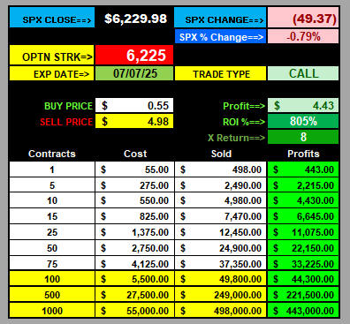 Today, the H1 6225 CALL strike met the buy ranges and went parabolic with cash settlement!