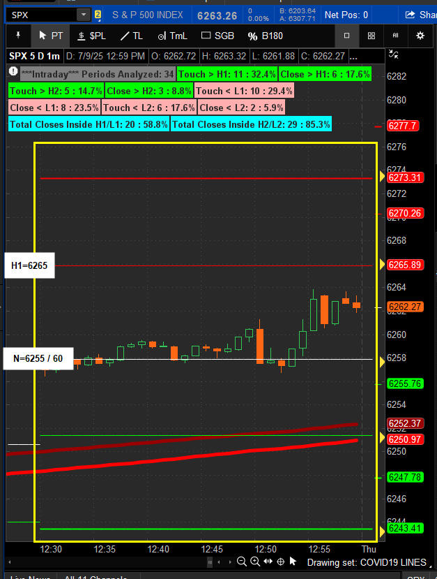12:30 PM PST - Quant Pivot lines: Neutral =6255 / 60 H1=6265 - CLOSE - 6263.26 +37.74 +0.61%