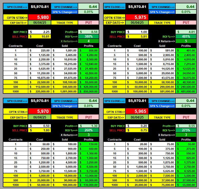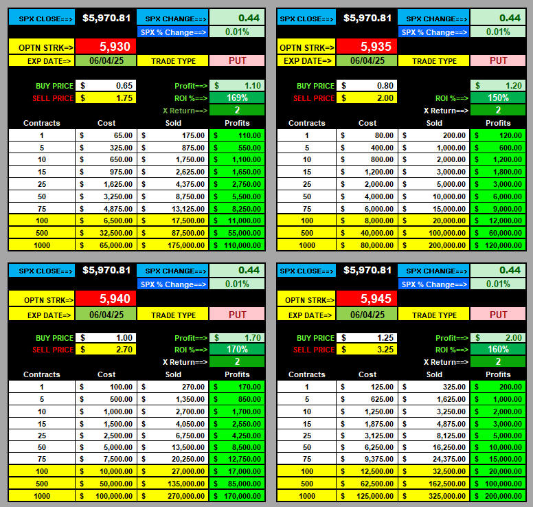 $1.00 Opening Formula Strike Ranges: CALLS 6030 / PUTS 5930