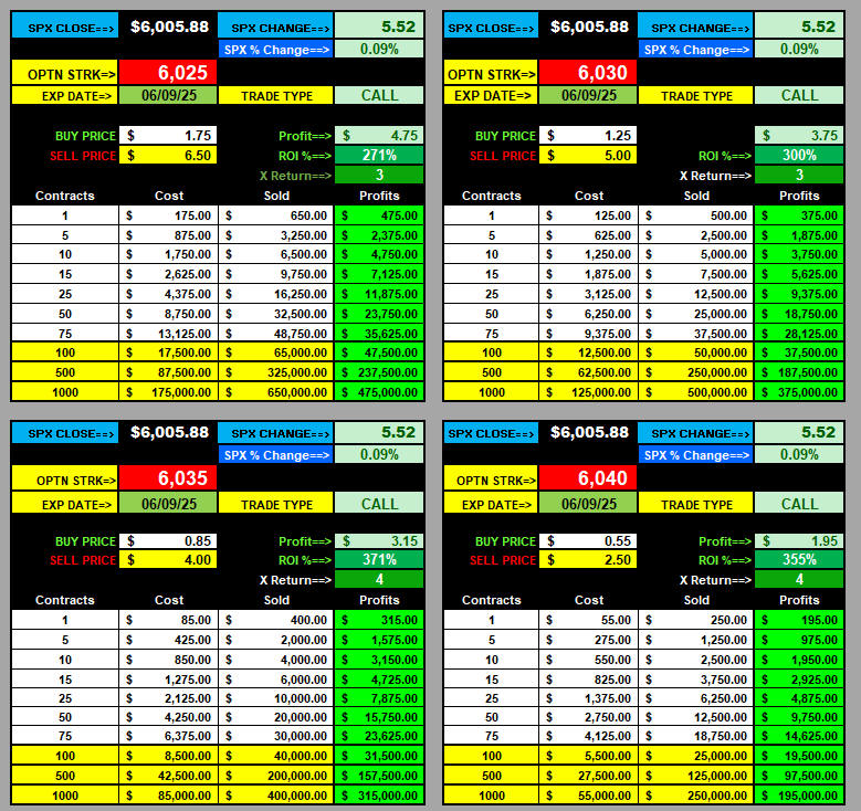 $1.00 Opening Formula Strike Ranges: CALLS 6055 / PUTS 5955