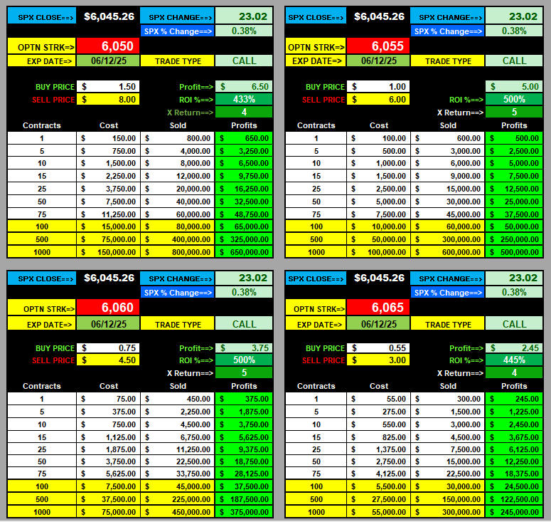 $1.00 Opening Formula Strike Ranges: CALLS 6060 / PUTS 5960