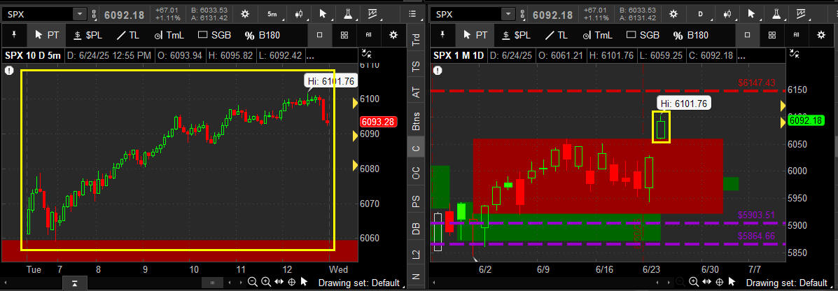 Today, SPX was grinding up all day and struggled to hold over 6100 after 12:30 PM PST.