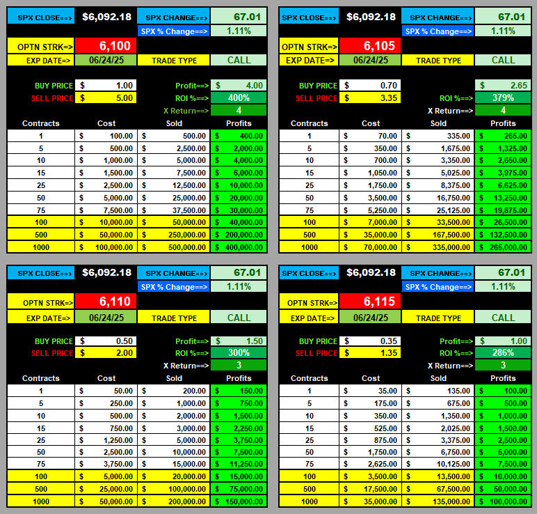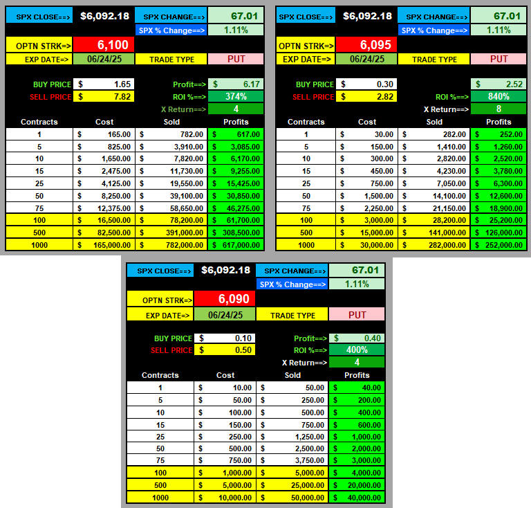 The QP PUTS made an inpressive last minute rocket move with HUGE cash settlement on the 6095's !