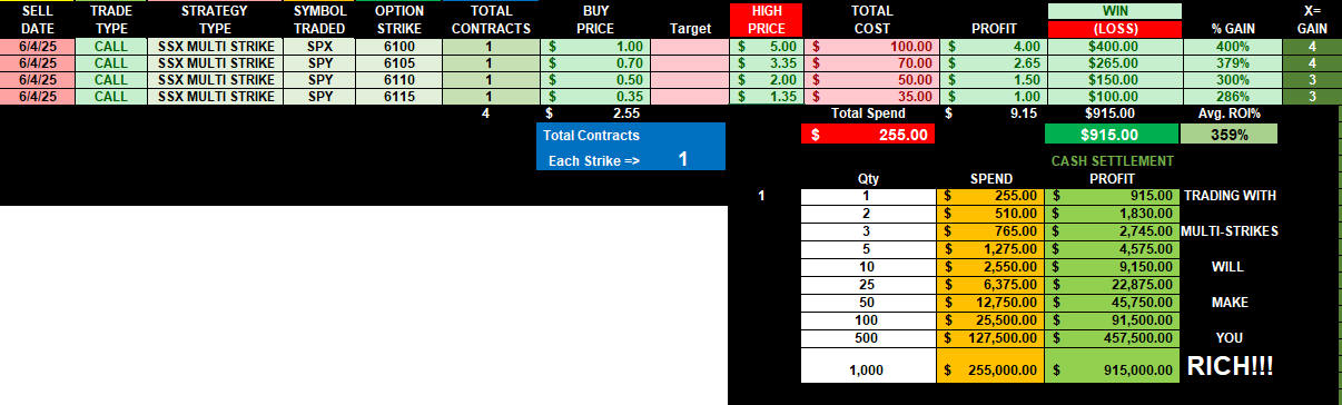The whole number 6100 strike fit the formula and achieved the 400% ROI target!
