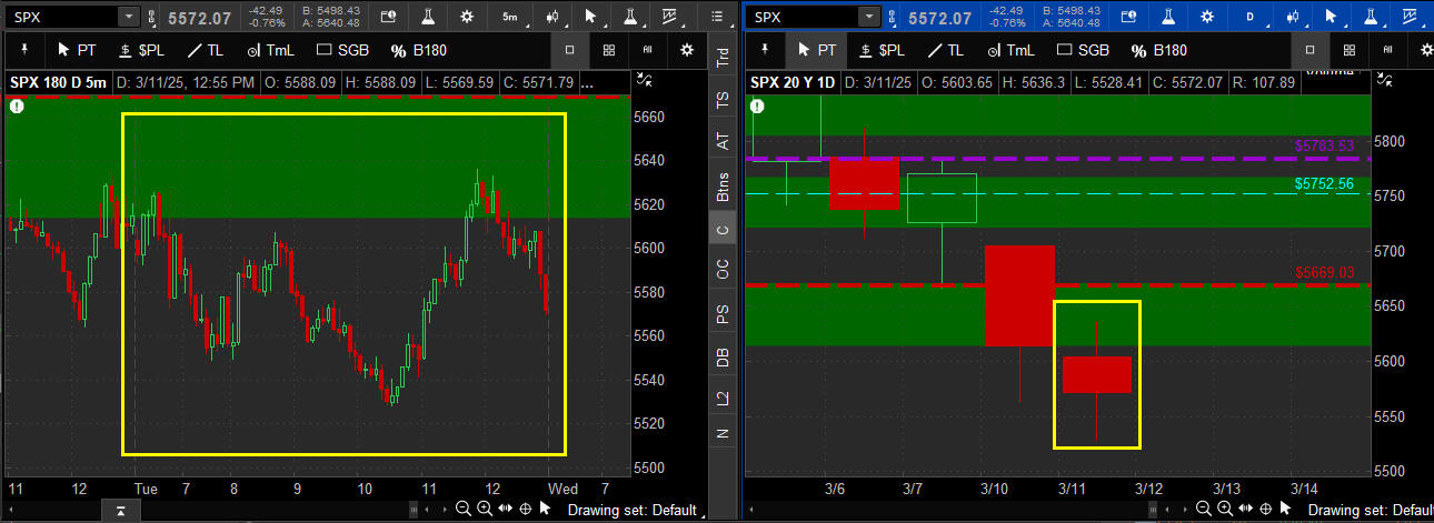 OPEN - 5981.88 / HIGH - 5993.69 / LO - 5858.78 / CLOSE - 5861.57 — (-94.49) Days Range: 134.91