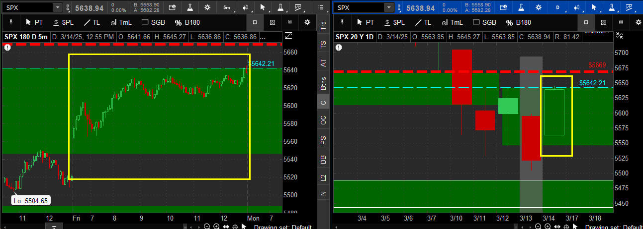 OPEN - 5563.85 / HIGH - 5645.27 / LO - 5563.85 / CLOSE - 5638.9 — +117.42 Days Range: 81.42