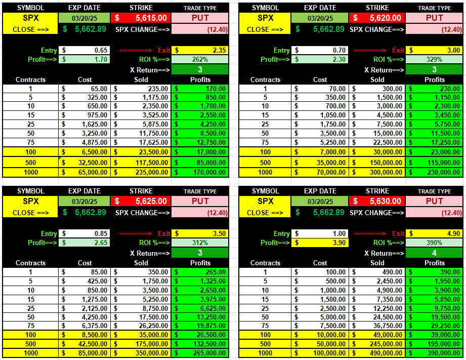 Today was a Double Dip day when the SPX topped out, then the PUTS dropped right into our buy zones....Cha-CHING!!!