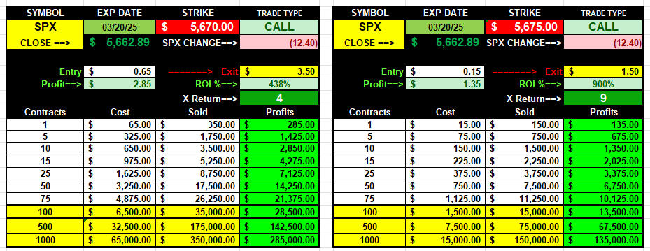 Today, the cost of the options were to high at the QP Neutral so the only strike that fit the formula was at H1 5670 CALL.
