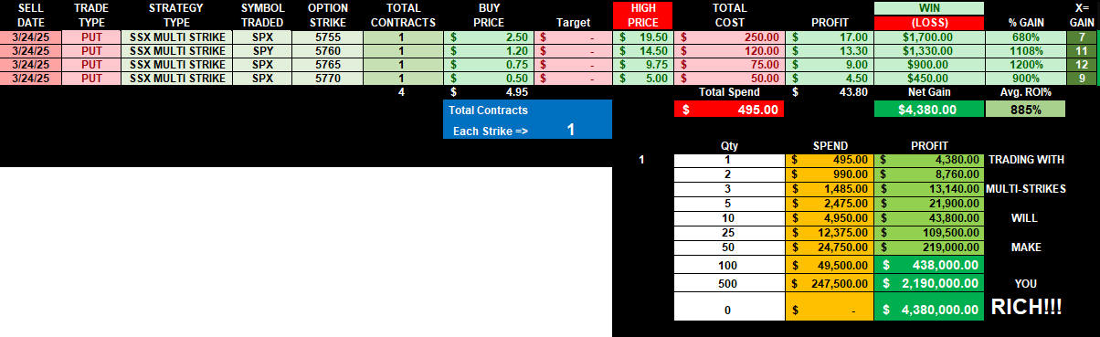 The QP Neutral strike was too expensive but the 5775 hit the buy line and made nice gains.