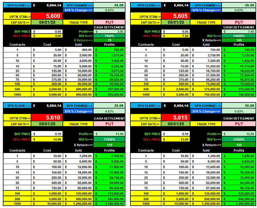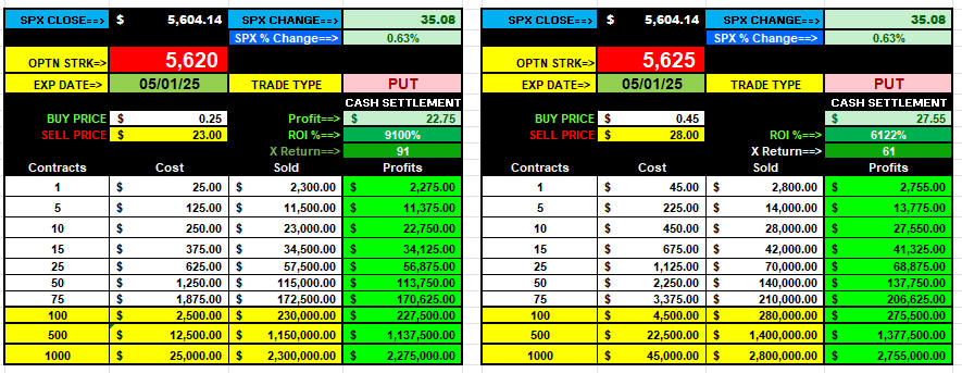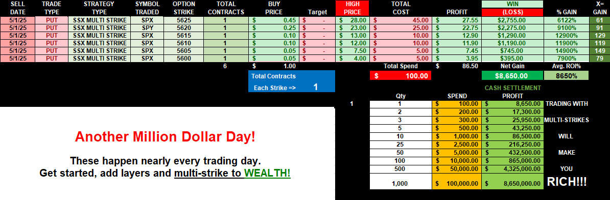 Today, the $1 formuls strikes were also the EOD strikes and made a lot more ROI and CASH SETTLEMENT TOO!!!