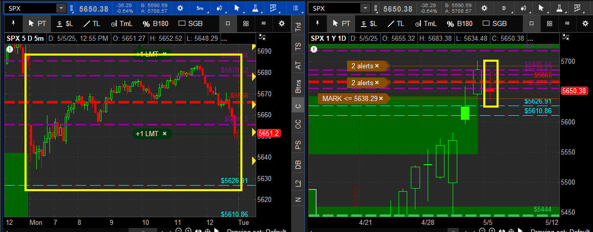 12:30 PM PST - Quant Pivot lines: Neutral =5605 - CLOSE - 5650.38 (Half #) — (-36.29) -0.64%