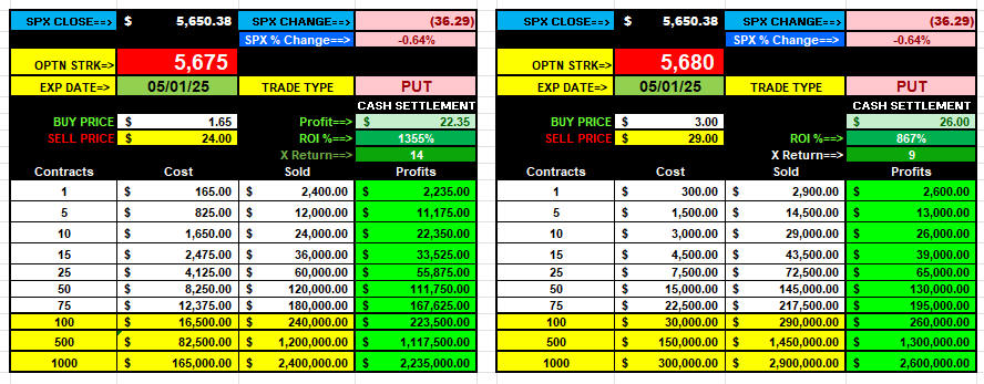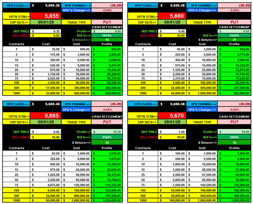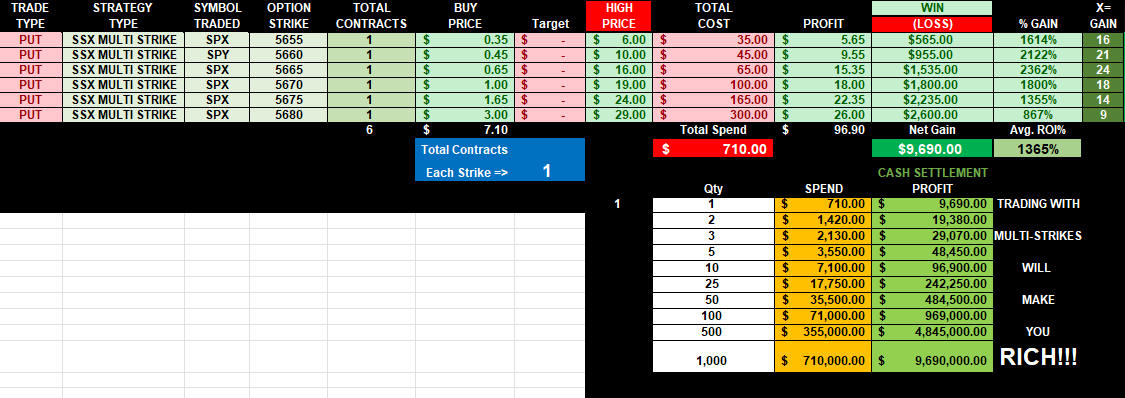 Both the CALL and PUT strikes hit the $1 buy price target but failed to reach the sell targets at $5.00; however, the EOD action more than covered it ;-).
