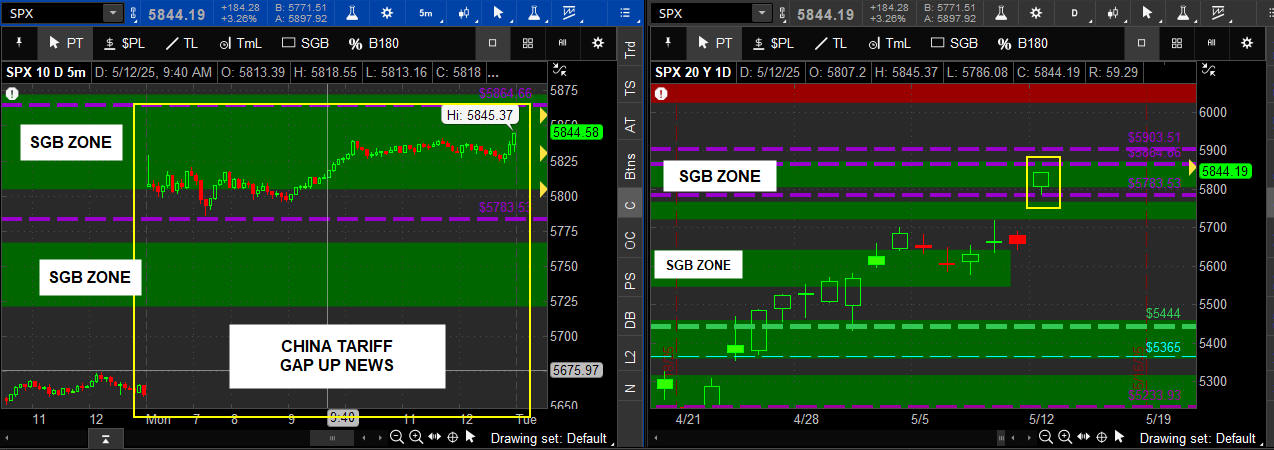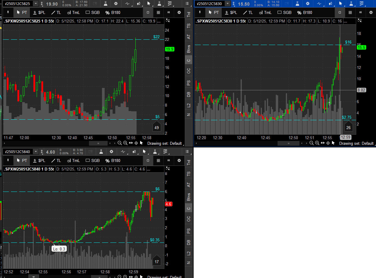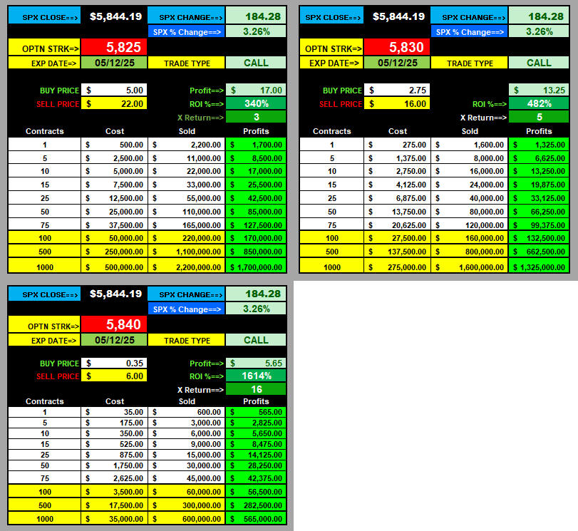 Due to the much higher gap open range, there were no $5 strike after 5825, so you had to pay higher prices and be at $10 increments on the next strike prices; however, the 5840's were the best choice for EOD formula and made HUGE cash settlement ProfitsUP!