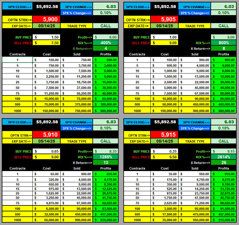 $1 Opening Formula Strike Range: CALL 5950 / PUT 5845/55