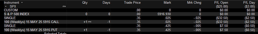 $1 Opening Formula Strike Range: CALL 5920 / PUT 5815