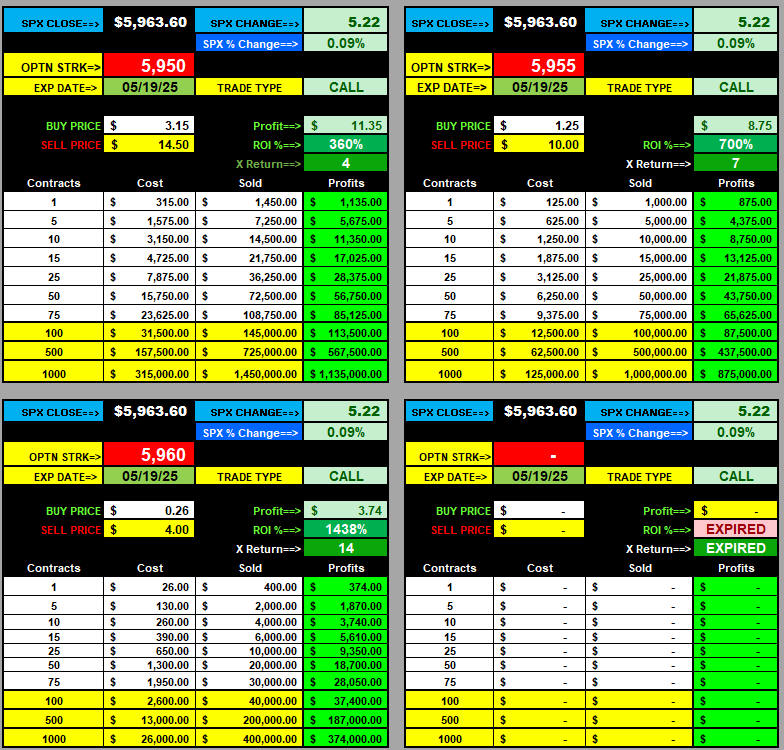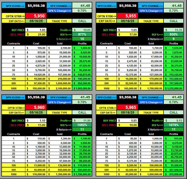 $1 Opening Formula Strike Range: CALL 5980 / PUT 5875