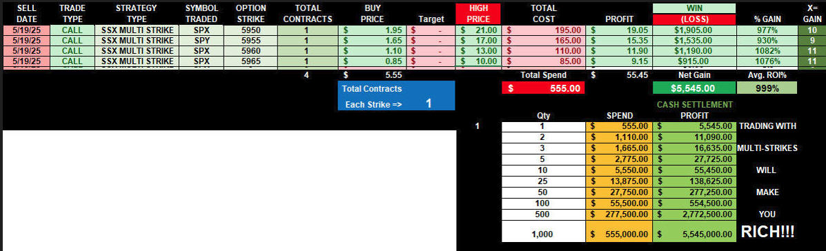 Today, the SPX made a nice 11 point move higher into the close and took the QP strikes to Moby Dick Cash Settlement wins!