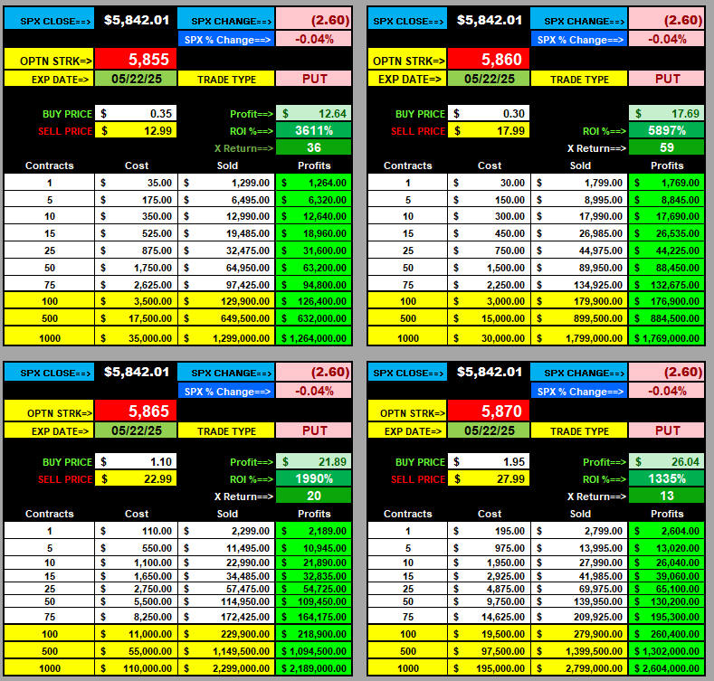 Today, the SPX made a huge drop into the close and athe PUTS webnt full on Moby Dick ProfitsUP! All these strikes it the EOD Formula and cash settled!!!
