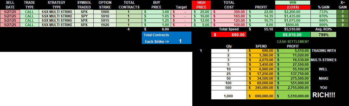 Today, the SPX was on a massive rally post Memorial Day, but still managed a nice ROI and Cash Settlement over 9X.