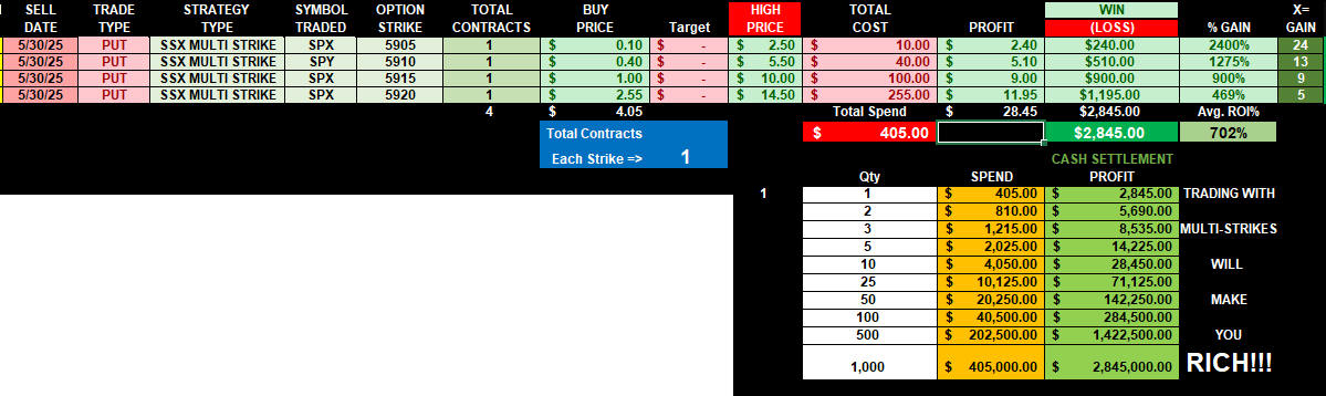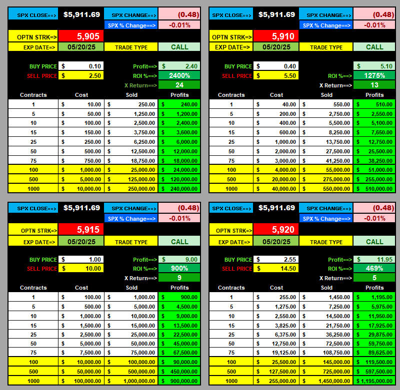 $1.00 Opening Formula $50 OTM Strike Ranges: CALLS 5955 / PUTS 5855